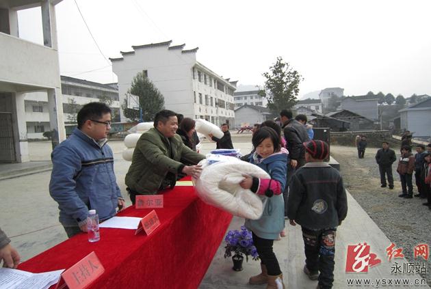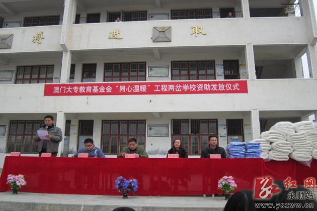 红网永顺站12月27日讯(通讯员樊神木涂德文)12月26日,永顺县委统战部在两岔乡九年制学校举行澳门大专教育基金会“同心温暖”工程资助发放仪式,为大山深处的贫困孩子免费发放186套床上用品。按一套2床棉絮(1盖1垫)、1床被套、1床床单、1个枕套、1个枕芯共6件套的标准配备,总价值6.3万元。据介绍,澳门大专教育基金会从2011年起,已累计资助该县贫困学生410人次,爱心助学金74万元。