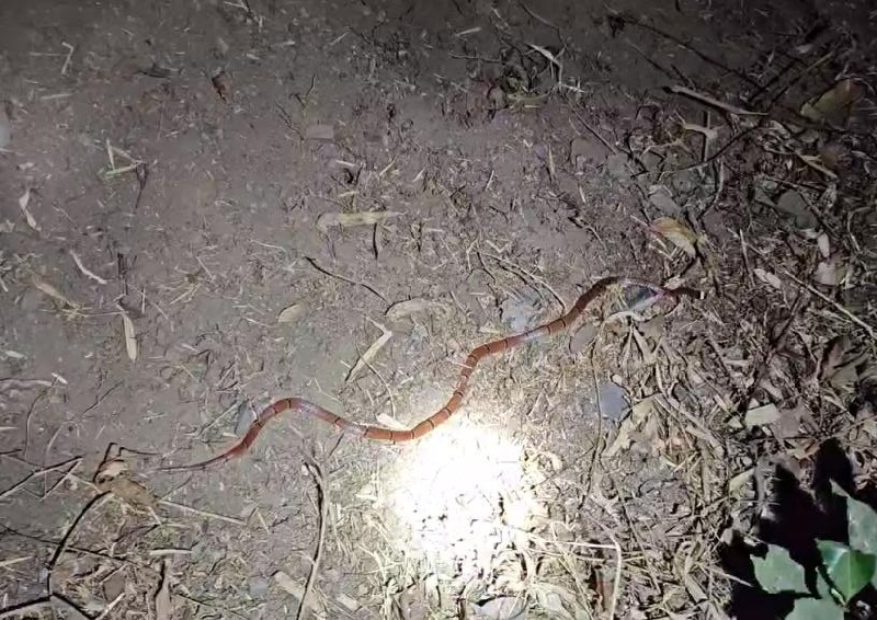 永顺融媒·今日永顺客户端9月29日讯(通讯员 覃慧英 田永祥)9月28日晚,湖南小溪国家级自然保护区工作人员开展夜调时,在小溪村大坪岗组发现了一条罕见的红色蛇类,当即拍了照片和视频。经吉首大学张佑祥副教授鉴定后,确定为中华珊瑚蛇Sinomicrurus macclellandi。此次发现刷新了该保护区爬行类记录。